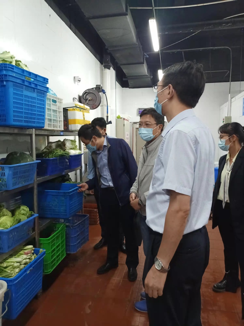 民以食为天,食以安为先。朱处长一行首先来到总务处(后勤服务总公司)自营食堂(李园餐厅二楼),查看了伙食原材料的仓库管理、各类台账记录、食堂操作间的环境卫生、餐具消毒,加工售卖、水电气安全以及疫情防控等具体工作。