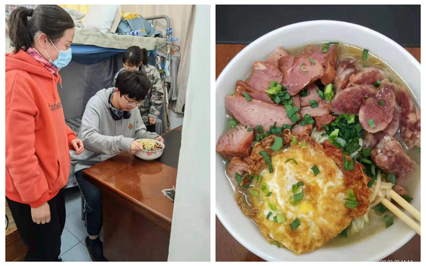 她,王小燕,学生公寓楼管员。十年如一日,每天早上7:30准时到岗,为的是每天亲眼看着同学们出楼上课才安心,同学们的冷暖、烦恼和心情变化,她都看在眼里,记在心里。等忙完日常工作后,想办法了解情况帮助同学。一天查寝得知蒋同学生日将到,想吃妈妈做的长寿面。因为疫情管控,校园封闭管理,不能外出回家过生日,有点惆怅。言者无意,听者有意。她记住同学的生日,当天特意到菜场买来新鲜食材——干切牛肉、香肠和鸡蛋。利用中午午饭时间,特意为他准备一碗热气腾腾干货满满的长寿面,在宿舍也能吃上心心念念的妈妈味道的生日面,让他激动不已。