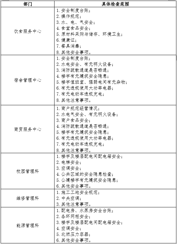 根据《省教育厅办公室关于进一步做好全省高校安全检查工作的通知》(苏教办安函〔2023〕1 号),《省教育厅关于做好当前学校安全工作的通知》(苏教安函〔2023〕4号)要求,结合学校工作安排,总务处(后勤服务总公司)将组织安全生产大检查工作。现将有关事项通知如下。