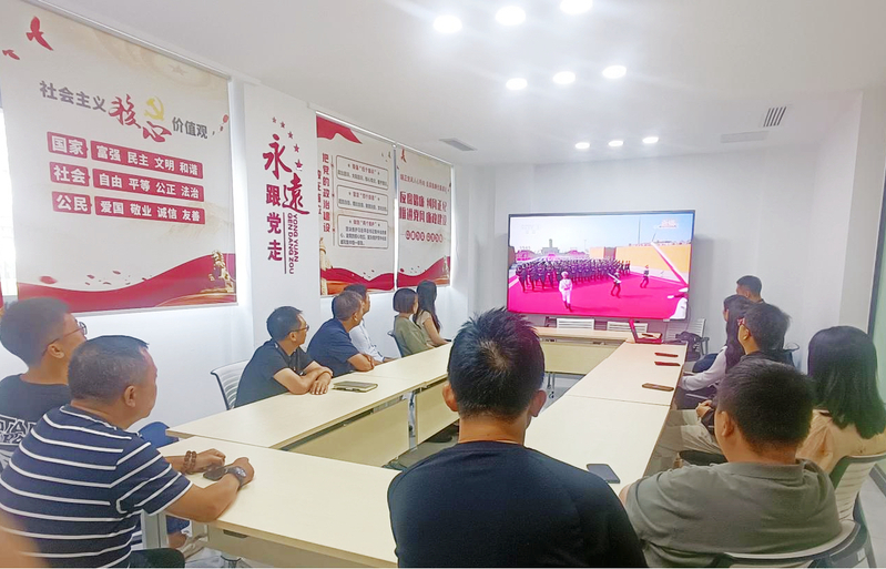 9月3日上午,纪念中国人民抗日战争暨世界反法西斯战争胜利80周年大会在北京天安门广场隆重举行。为大力弘扬爱国主义精神,厚植民族情怀,同步学习习近平总书记重要讲话精神,总务处(后勤服务总公司)党委组织部分党员代表在科创三号楼108会议室共同观看这一历史性盛况。