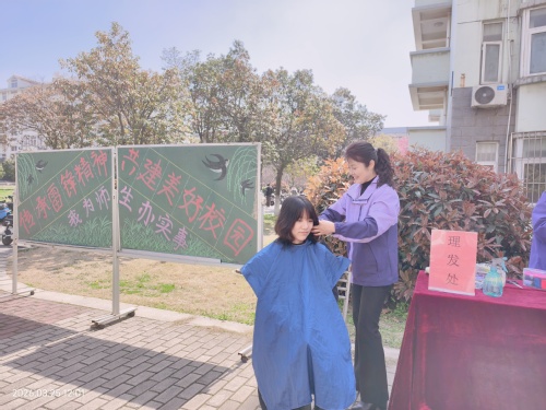 活动设置便民服务、健康关怀、文化传递以及示范引领四大板块,让志愿服务既有温度又有深度。比如,便民服务区聚焦师生日常需求,提供血压测量、衣物缝补、免费理发、眼镜清洗等贴心服务,精准解决生活中的小难题;健康关怀区同步普及保健知识,守护师生身心健康;文化传递区以“旧书换绿植”为载体,实现知识共享与环保理念传递的双向赋能;示范引领区则由党员先锋与宿管阿姨组成志愿者团队,以身作则践行雷锋精神,发挥先锋模范作用。